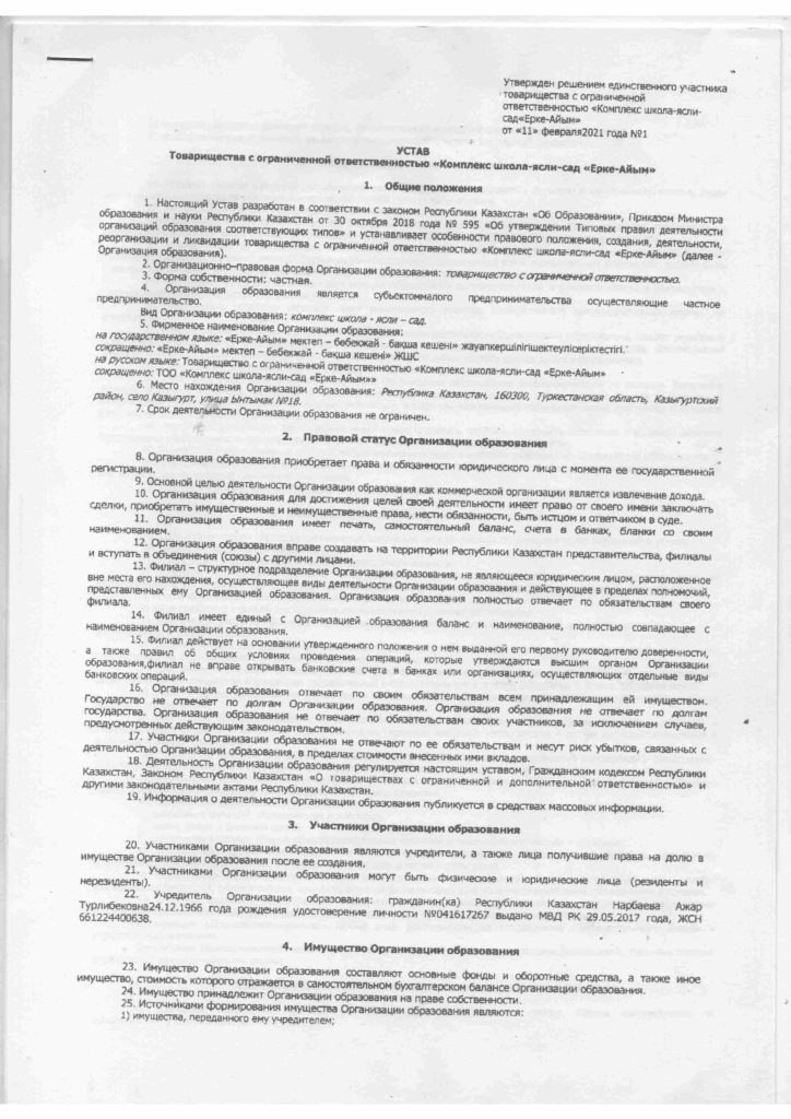 "Ерке-Айым" мектеп-бөбекжай-бақша кешені"
