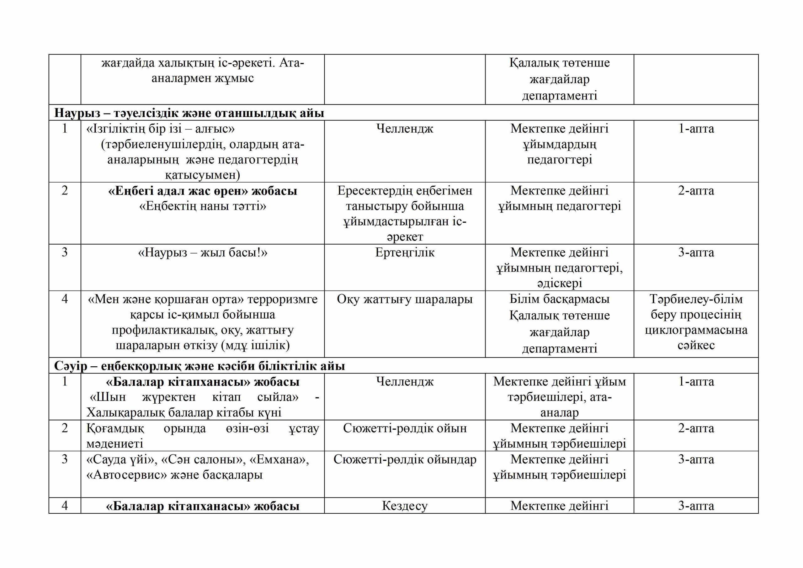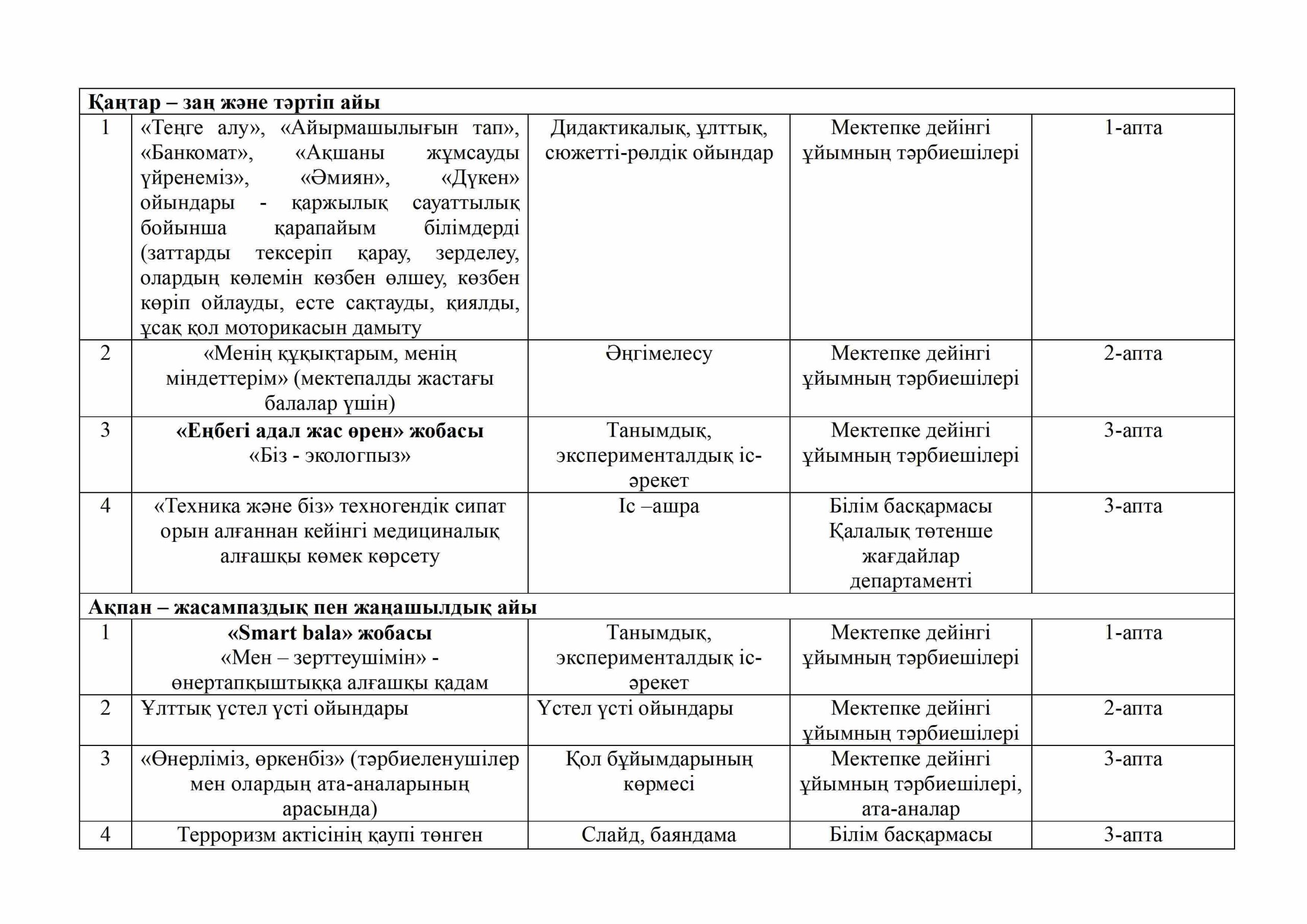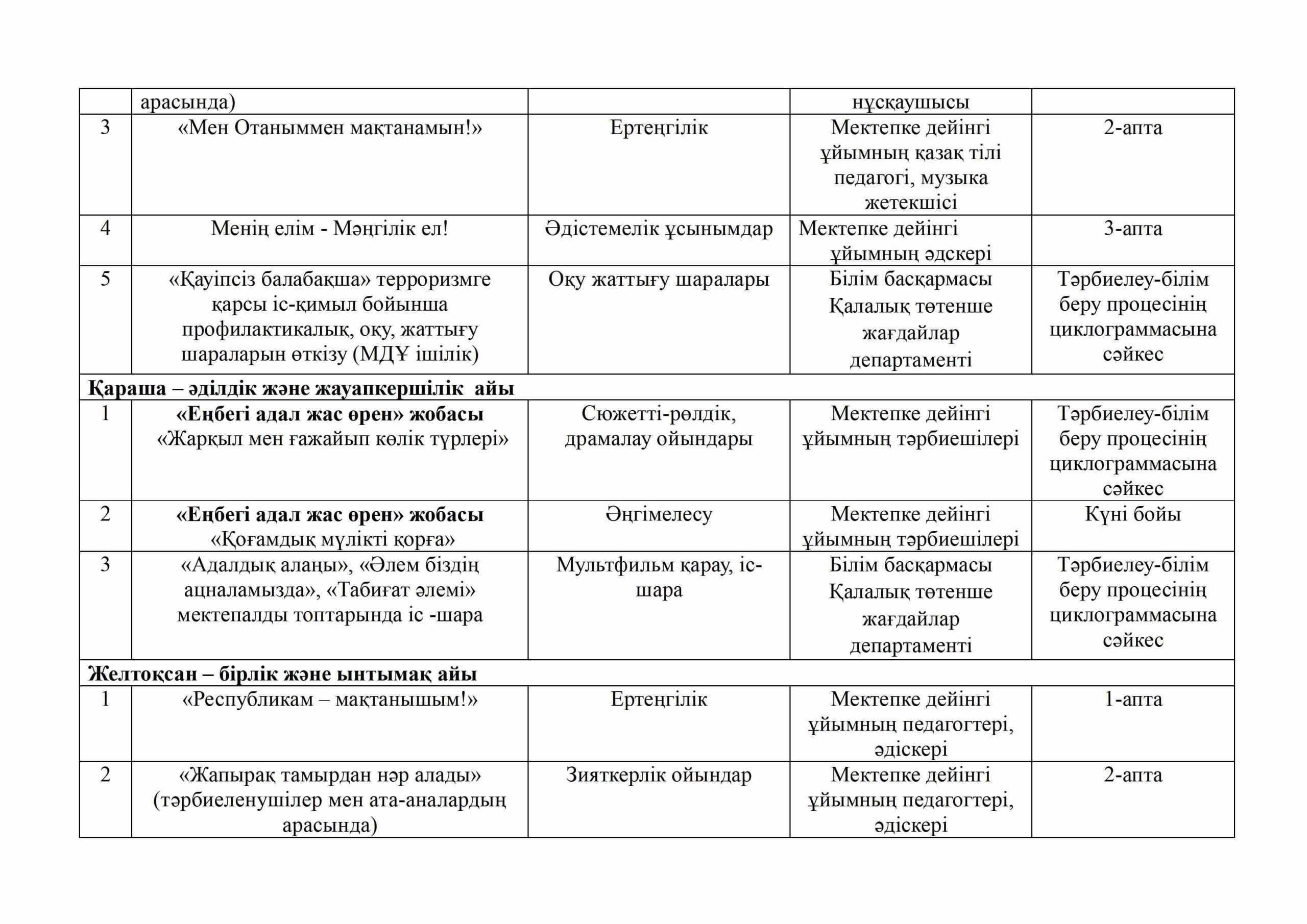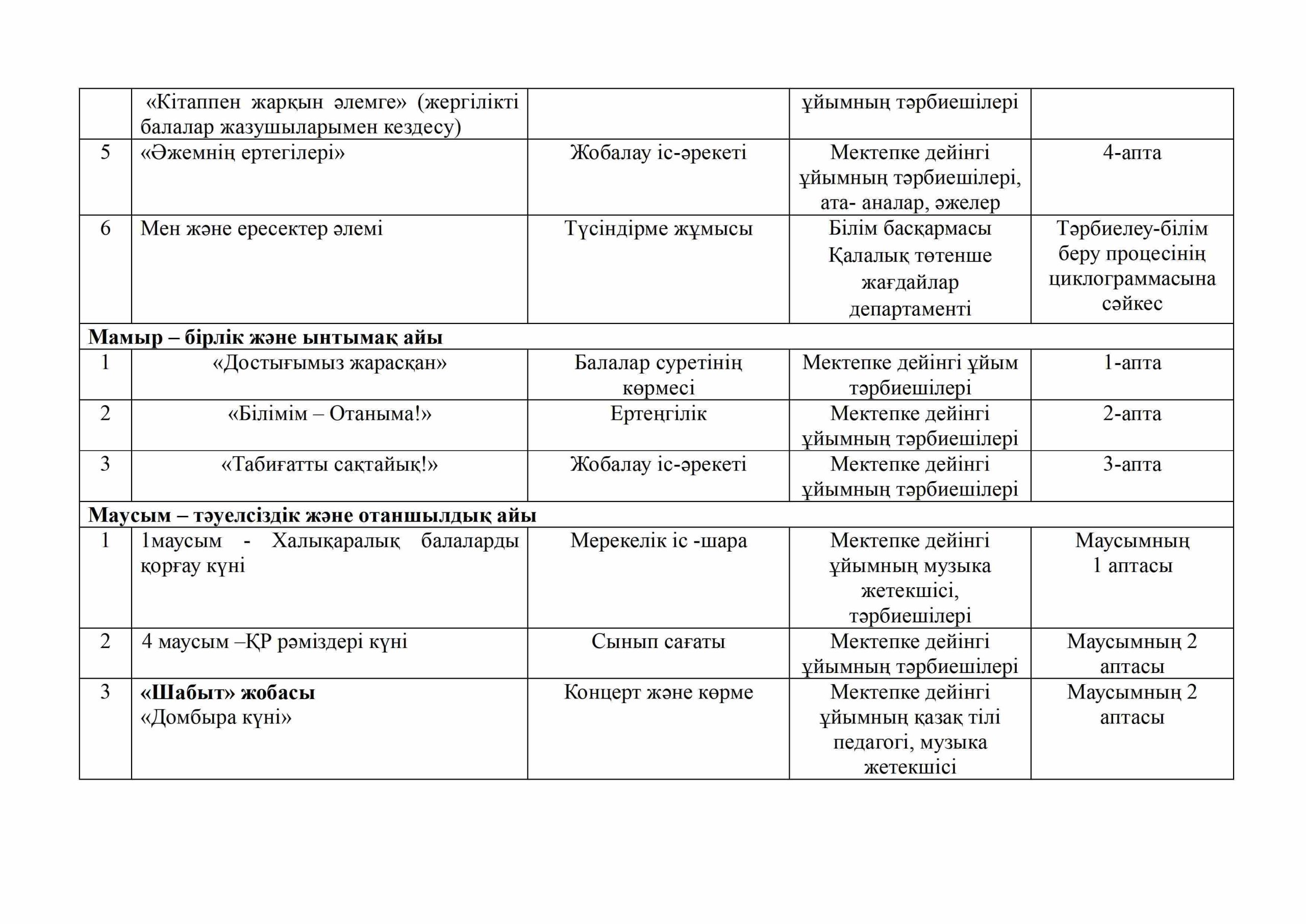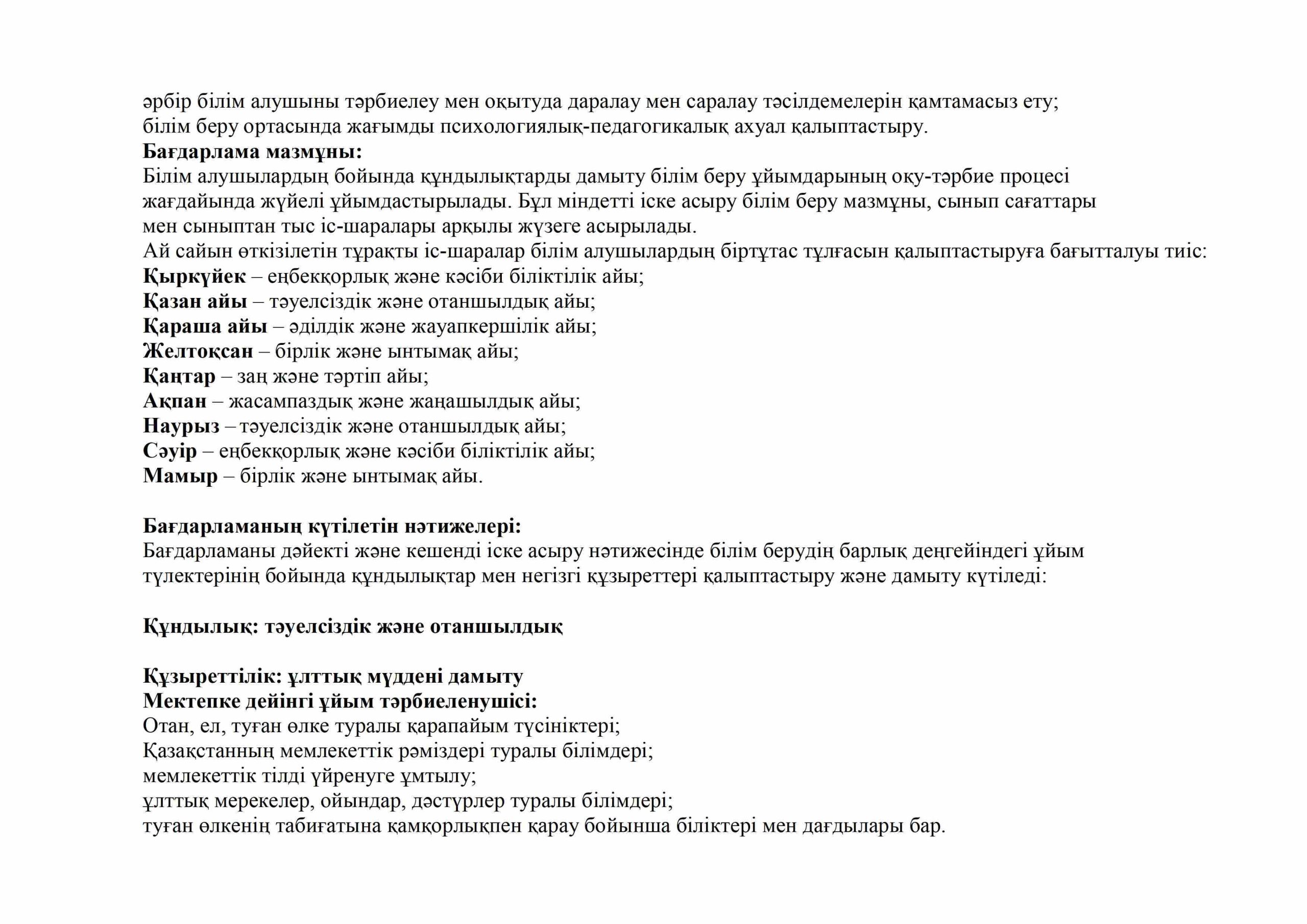 «БІРТҰТАС ТӘРБИЕ» БАҒДАРЛАМАСЫ ІС-ШАРАЛАРЫ
