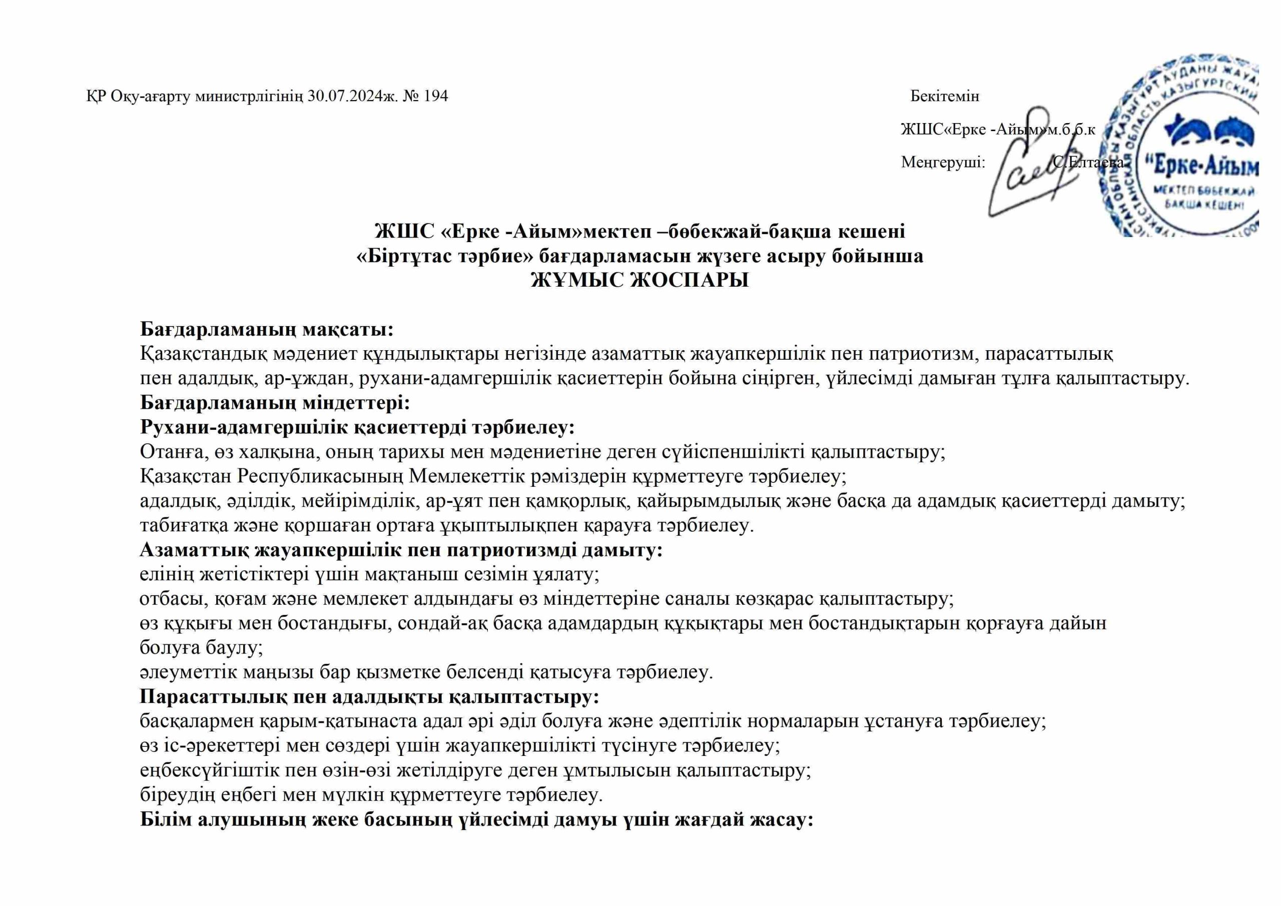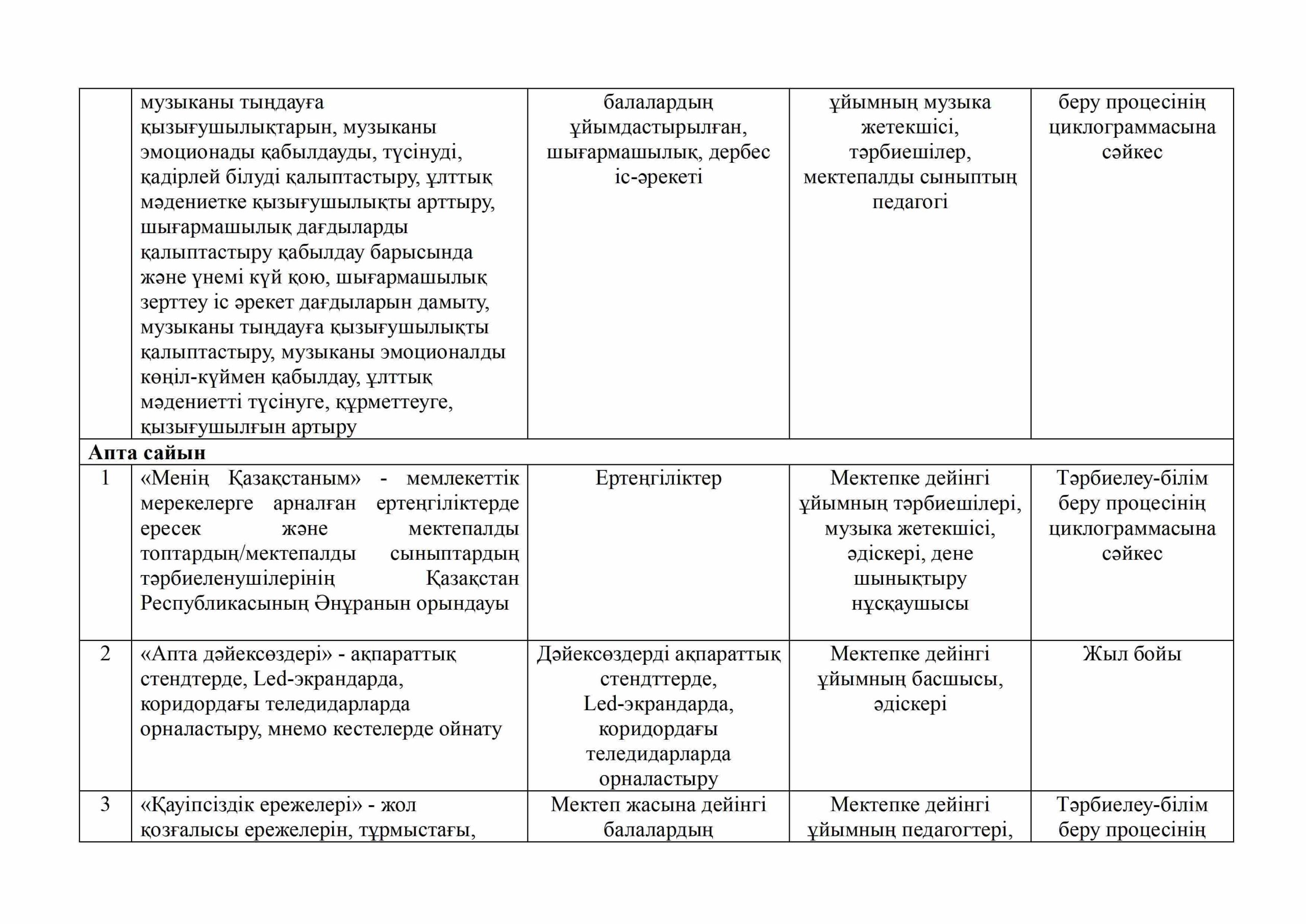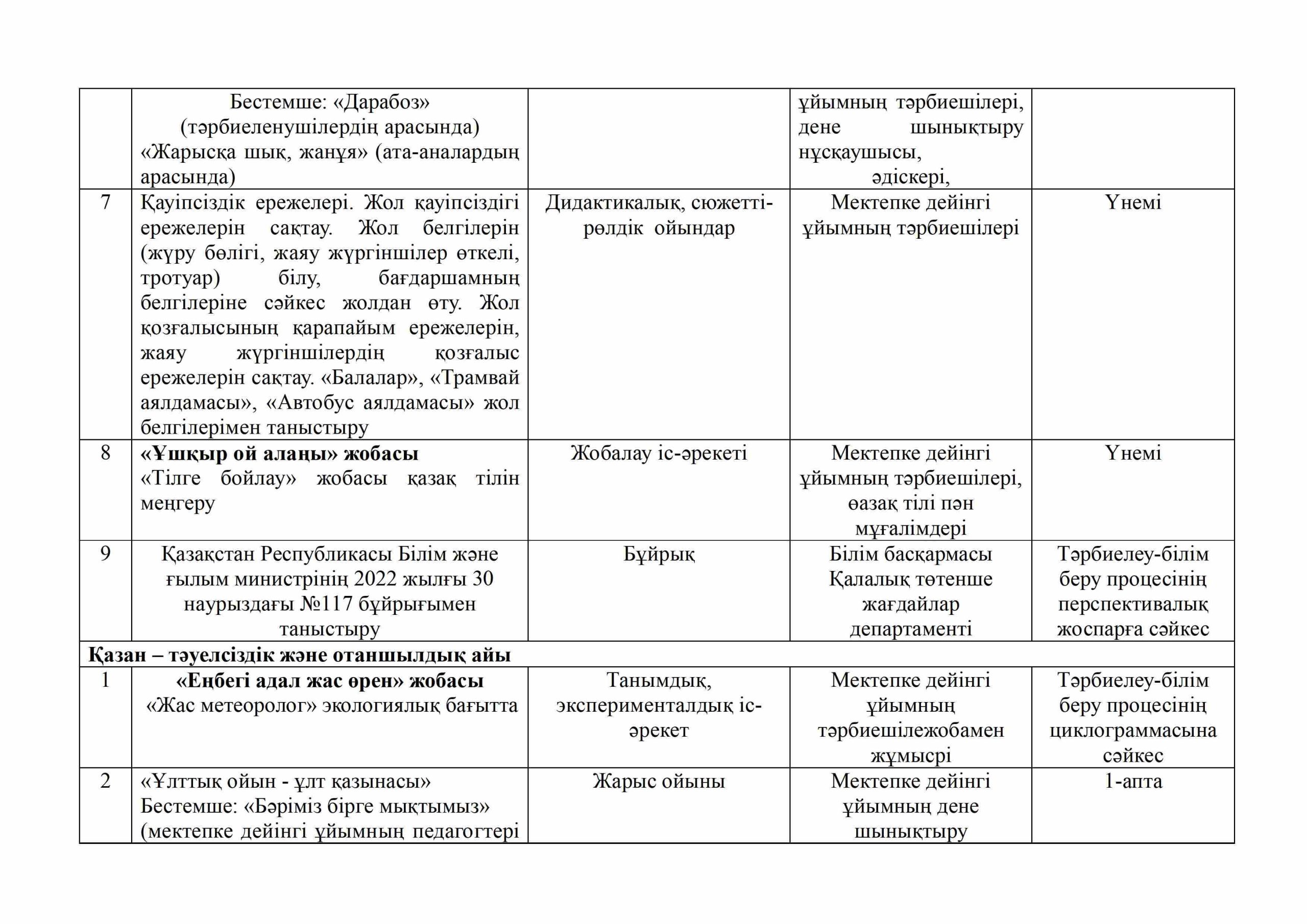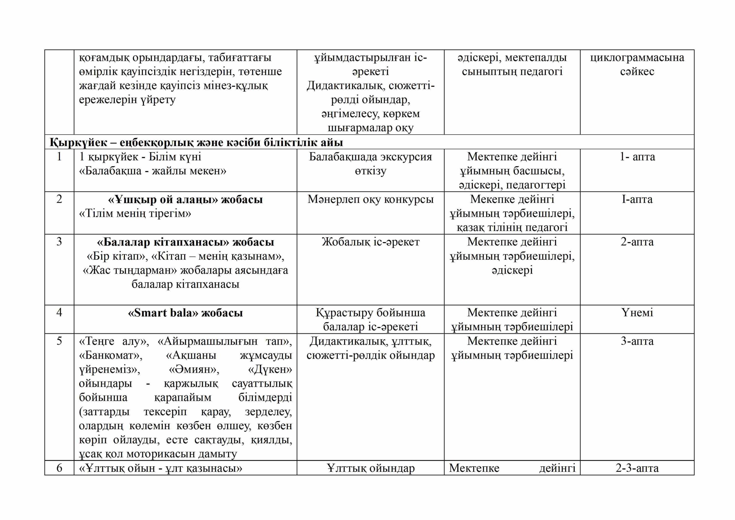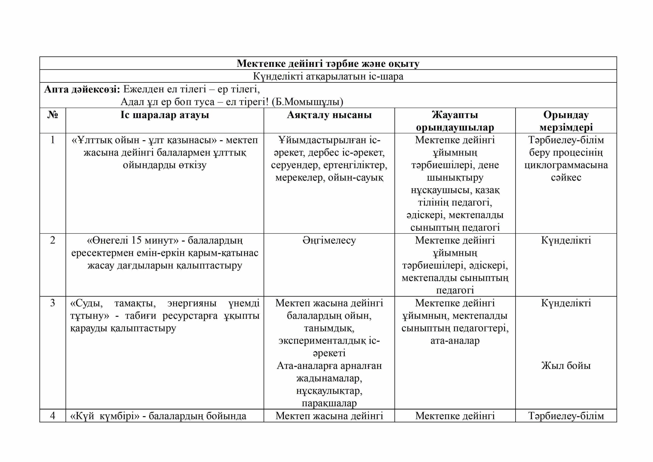 «БІРТҰТАС ТӘРБИЕ» БАҒДАРЛАМАСЫ ІС-ШАРАЛАРЫ