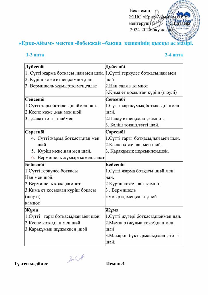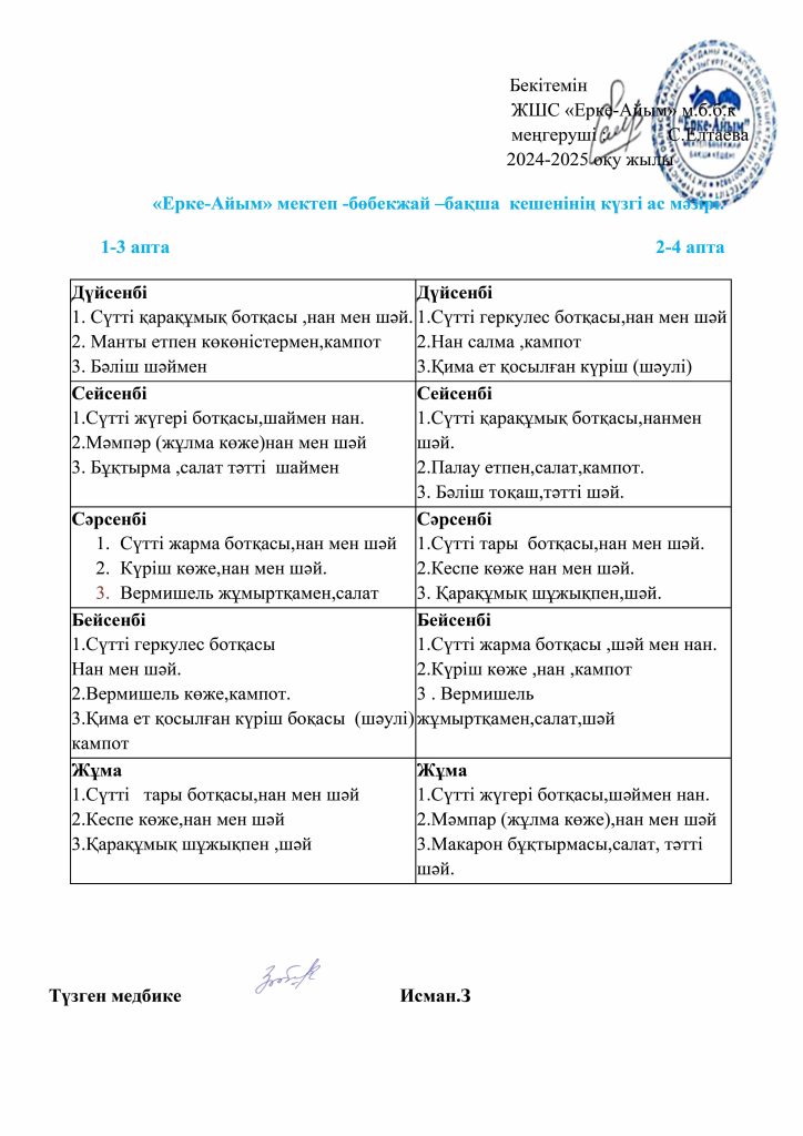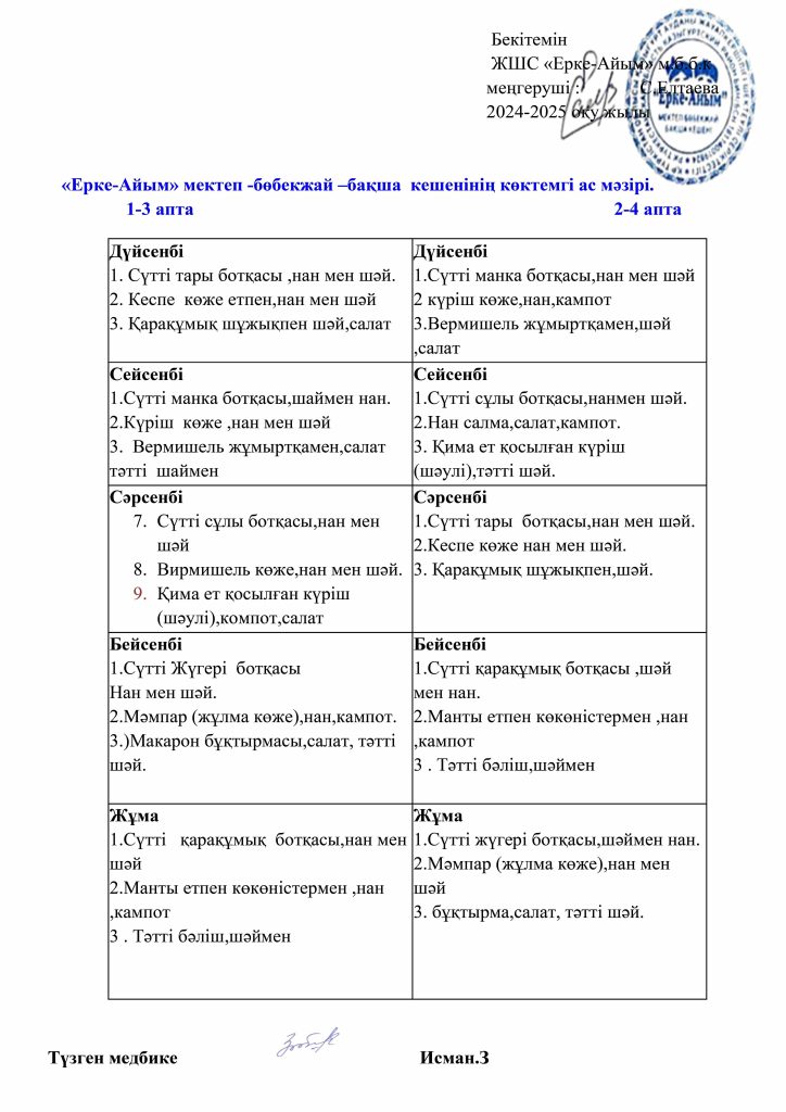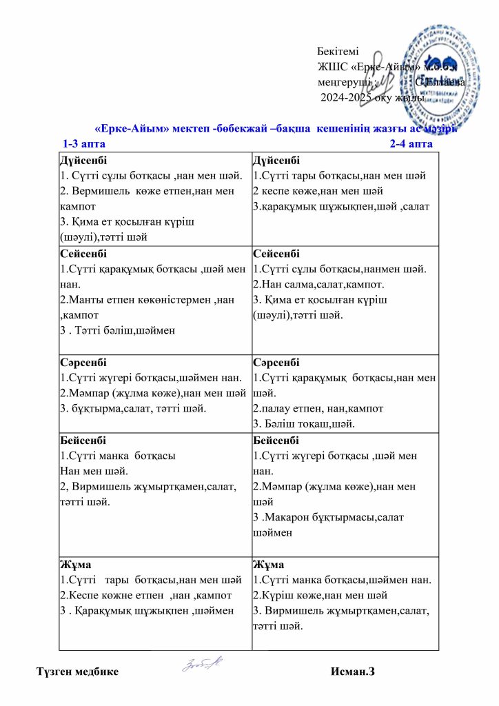 БАЛАЛАРДЫҢ АС МӘЗІРІ